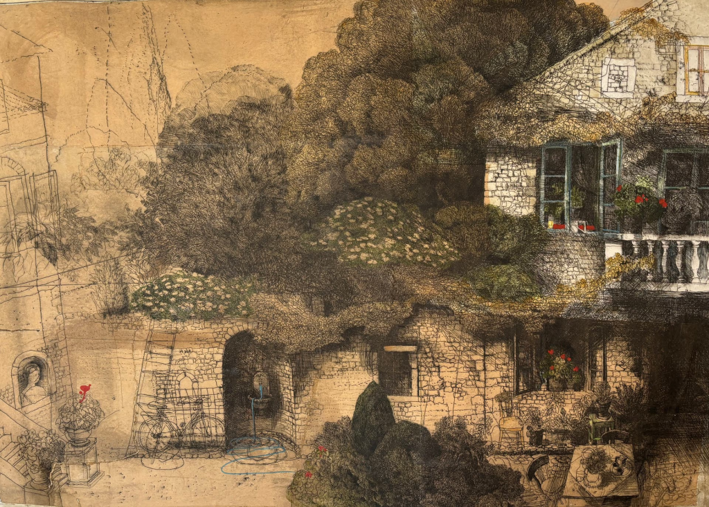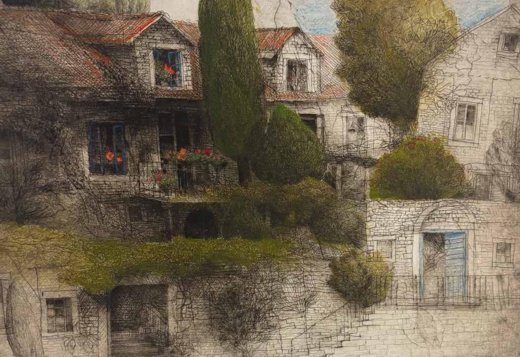 “Painting stone houses for me means documenting material and visual purity, simplicity, harmony of proportion and unity with the soil and the place. Unfortunately, stone houses are becoming a beauty that dies and disappears due to urbicide, which is increasingly visible, in which the traditions of a place are not respected, nor are they built with natural indigenous materials. That’s why I want the stone houses to live, at least in my works. If they influence someone to change their decision and instead of demolishing it, start rebuilding with respect and love the house as it was, my “construction” on canvas and paper will make sense.” (Safet Zec)